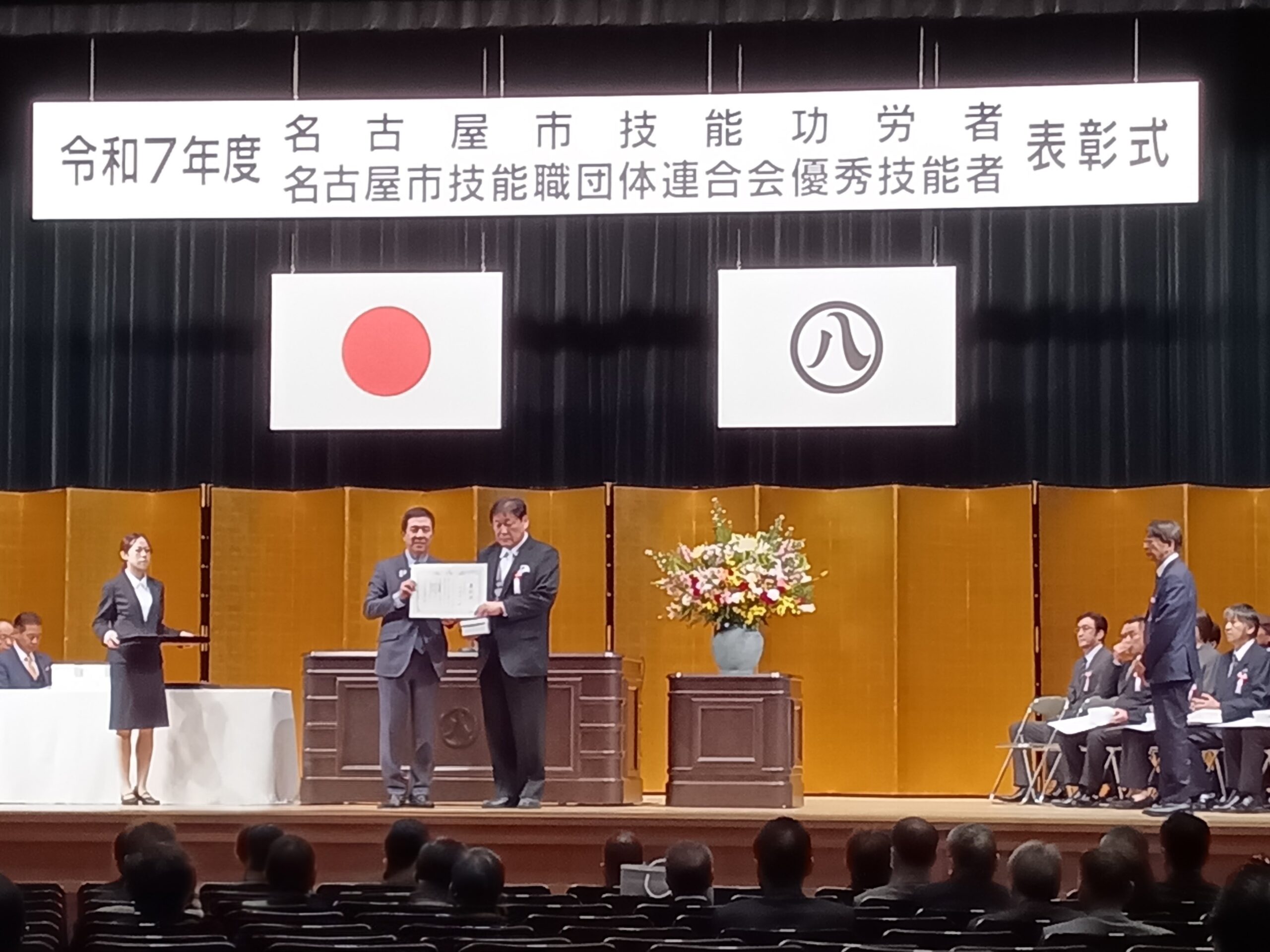 令和7年11月23日(日・祝)、岡谷鋼機名古屋公会堂(名古屋市公会堂)において、令和7年度名古屋市技能功労者表彰式ならびに名古屋市技能職団体連合会 優秀技能者表彰式が開催されました。